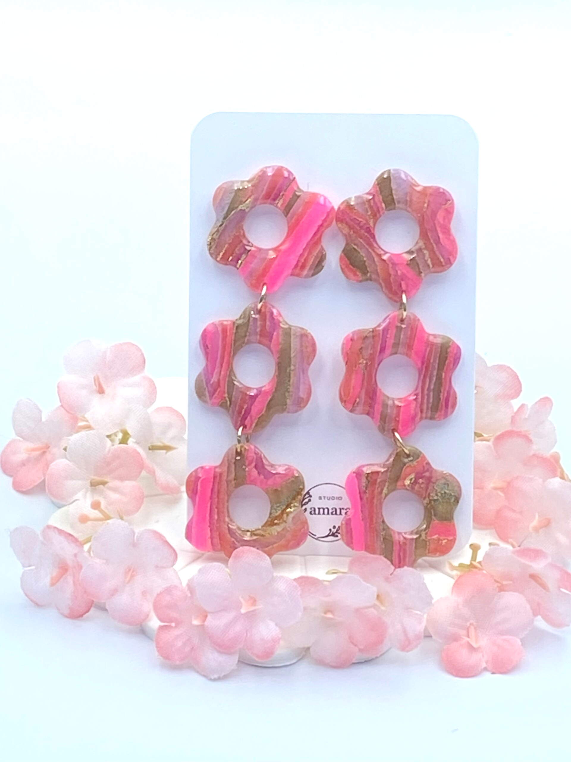 Beautiful pink faux agate earring made from polymer clay, resin on the front and the back and with stainless steal findings.